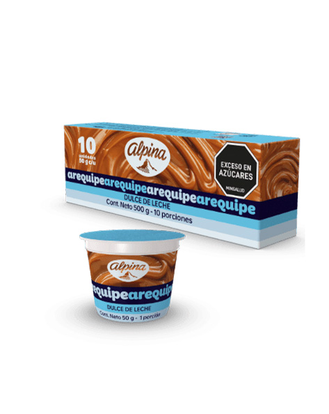 El paquete de arequipe x 10 unidades ofrece dulce de leche cremoso y suave en presentaciones individuales.