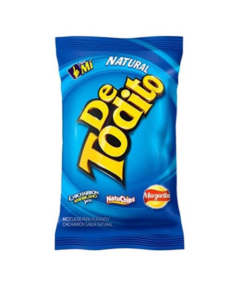De Todito 58 g es un paquete crujiente que combina papas fritas y chicharrones dependiendo el sabor, en una mezcla sabrosa y saludable.