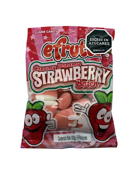 Efrutti Strawberry de 100g son gomitas en forma de fresas, con una textura suave y un sabor dulce y refrescante.