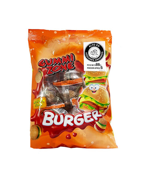 Divertida gomita con forma de mini hamburguesa, llena de color y sabor.