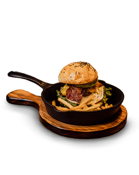 Carne de res, acompañada de aguacate, queso fundido, tocineta, frijol, huevo, vegetales frescos y todo en un pan brioche. Un festín de sabores mexicanos.